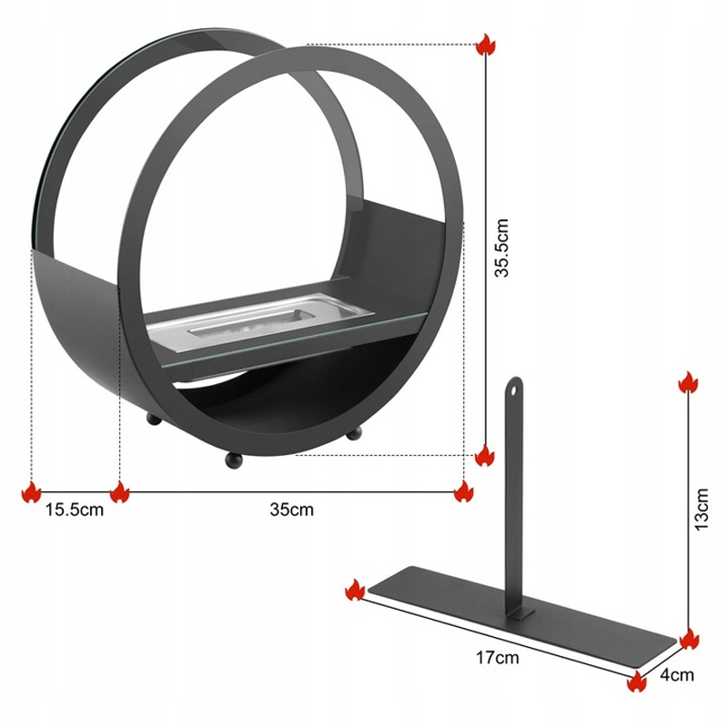 Biokominek wolnostojący stołowy – 35 × 15,5 × 35,5 cm