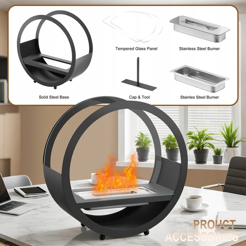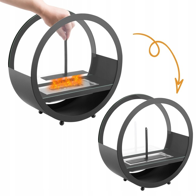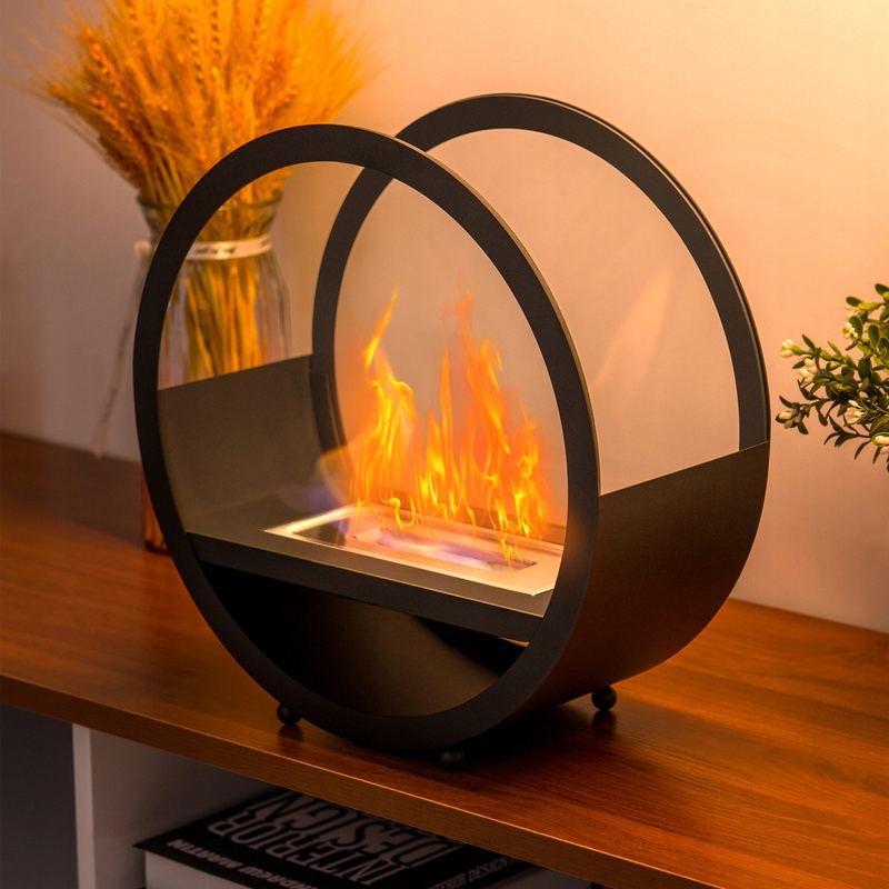 Wystarczy postawić go w wybranym miejscu, nalać biopaliwo i rozpalić ogień. Płomień jest stabilny, osłonięty szkłem hartowanym i bezpieczny w codziennym użytkowaniu.